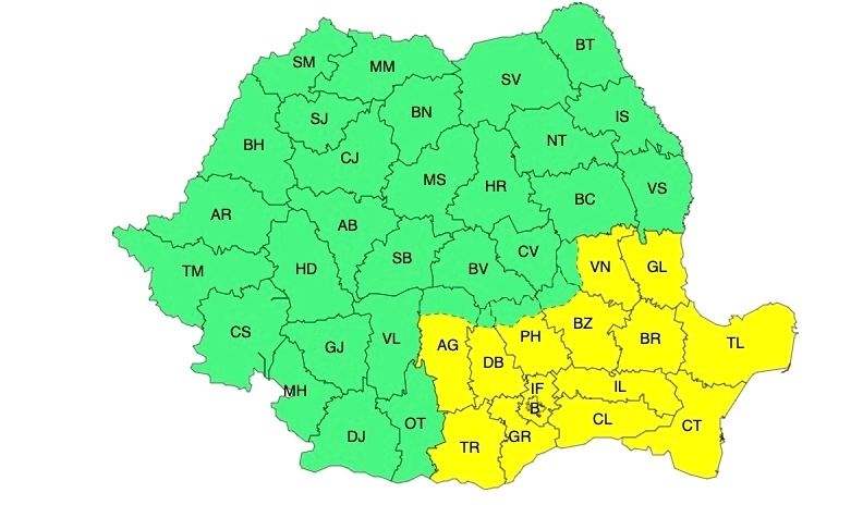 În intervalul menționat, în Muntenia, Dobrogea și în sudul Moldovei se vor înregistra temperaturi ridicate pentru această dată, maximele se vor situa în general între 30 și 35 de grade, iar disconfortul termic va fi ridicat, indicele temperatură-umezeală (ITU) situându-se în jurul valorii de 80 de unități.
