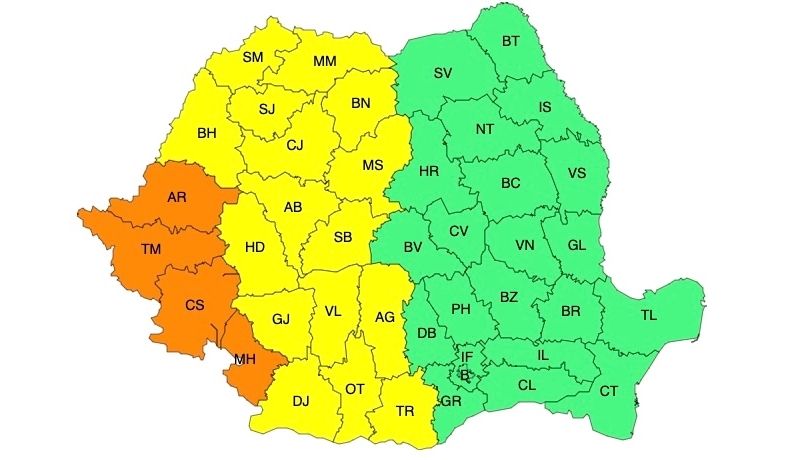 În județele Arad, Timiș, Caraș-Severin și Mehedinți canicula se va intensifica, disconfortul termic va fi accentuat, iar indicele temperatură-umezeală (ITU) va atinge pragul critic de 80 de unități. Temperaturile maxime, deosebit de ridicate pentru această dată, vor fi de 35...37 de grade, iar minimele de 18...20 de grade, valori ușor mai mari, în jurul a 23 de grade, urmând a se înregistra în Dealurile de Vest.