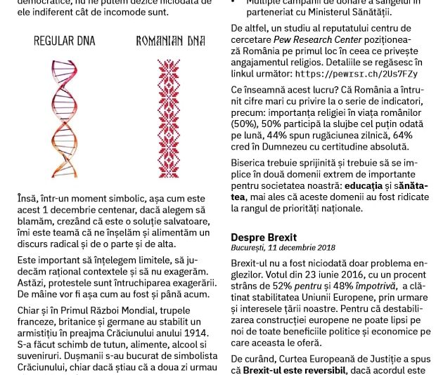 Însă, într-un moment simbolic, așa cum este acest 1 decembrie centenar, dacă alegem să blamăm, crezând că este o soluție salvatoare, îmi este teamă că ne înșelăm și alimentăm un discurs radical și de o parte și de alta