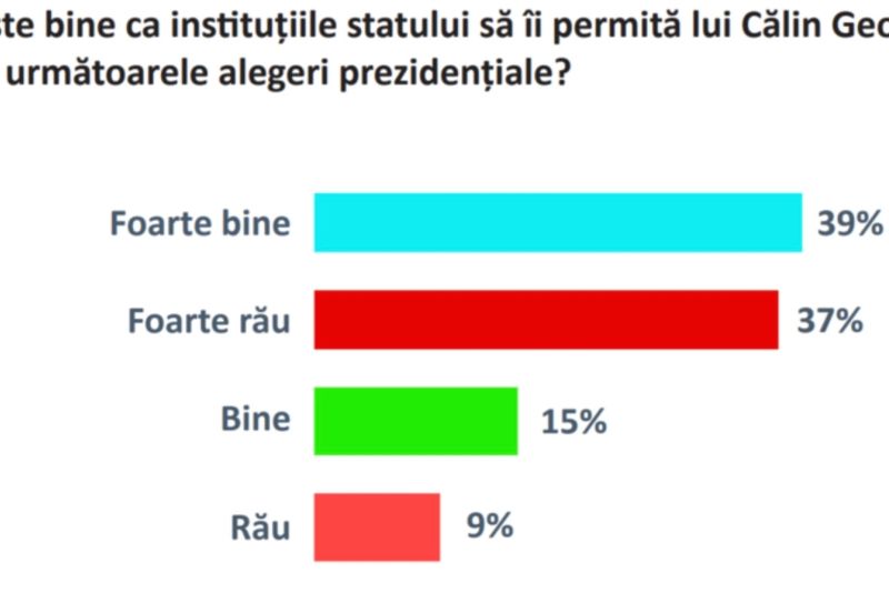 Potrivit datelor centralizate, 39% dintre respondenți consideră că este „foarte bine” ca independentul Călin Georgescu să candideze din nou, în timp ce 37% cred că este „bine”. Doar 15% au o poziție negativă.