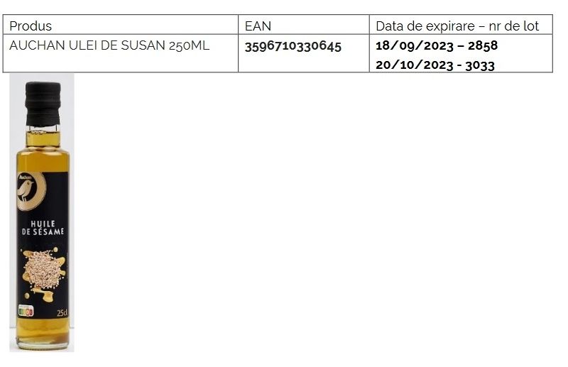 Auchan România confirmă că DOAR produsul si loturile enumerate mai jos sunt afectate.