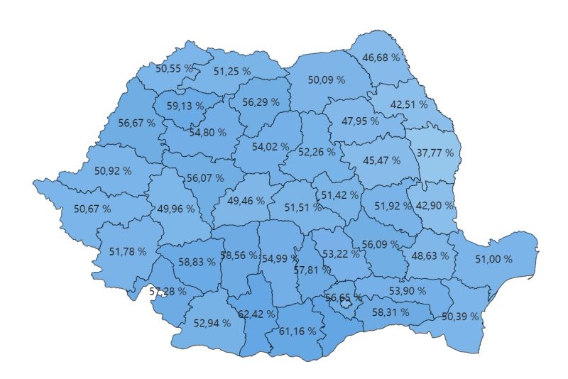 Instituția prezintă pe site-ul său și o hartă interactivă cu situația participării la vot, pentru fiecare județ în parte.