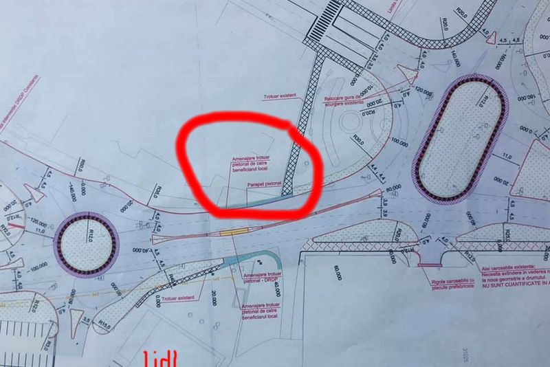 Drumarii fac două sensuri giratorii la Slobozia dar clienții Lidl vor traversa un drum european tot prin loc nepermis.Potrivit proiectului, cele două sensuri giratorii ar urma să fluidizeze circulația la podul rutier de peste râul Ialomița și la ieșirea spre Brăila, pe ruta ce leagă Moldova de Autostrada Soarelui.Schița celor două sensuri giratorii prezentată Primăriei Slobozia și pe baza căreia s-a emis autorizația de construcție arată că în dreptul magazinului Lidl nu va fi amenajată de către CNAIR o trecere pentru pietoni.[caption id="attachment_73520" align="alignnone" width="1500"]