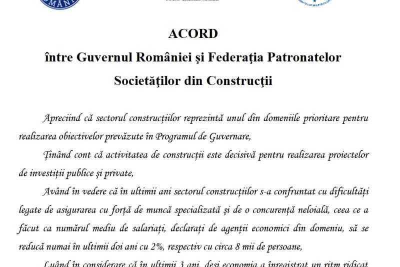 Documentul semnat de reprezentanții guvernului are la bază o înțelegere netransparentă cu Federația Patronatelor Societăților din Construcții, prin care părțile se angajează să colaboreze în vederea modificării cadrului legal în domeniu.