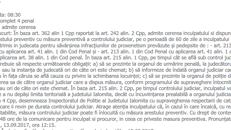 În iunie 2017 procurorii de la Parchetul de pe lângă Judecătoria Slobozia au pus în mișcare acțiunea penală față de numitul Stanciu Nicușor și au dispus arestarea preventivă a acestuia pentru 30 de zile.Stanciu era acuzat de proxenetism și a fost condamnat, la 1.11.2018, la 3 ani de închisoare de Judecătoria Slobozia.[caption id="attachment_23003" align="alignnone" width="300"]