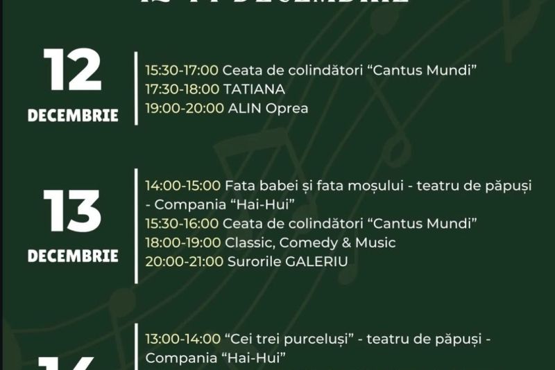 Printre atracțiile îndrăgite se numără roata panoramică, trenulețul lui Moș Crăciun, aleile decorate, standurile cu bunătăți de sezon și scena unde vor avea loc concerte live pe tot parcursul evenimentului.