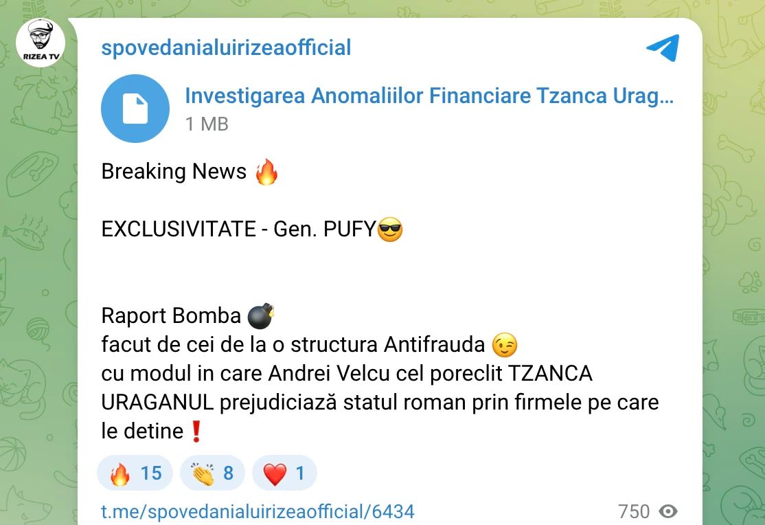 Fostul deputat Cristian Rizea a revenit în atenția publică cu noi informații prezentate pe rețelele sociale, unde a făcut referire la un set de documente despre care susține că provin de la o structură de antifraudă. De această dată, afirmațiile sale îl vizează pe Andrei Velcu, cunoscut publicului drept Tzancă Uraganu, în contextul unor date prezentate în emisiune.