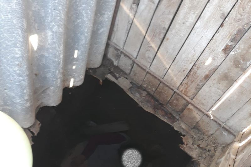 Bătrâna în vârstă de 74 ani a căzut ieri în jurul prânzului în latrina din curte adâncă de aproximativ 2 metri. Lemnul putrezit al podelei WC-ului a cedat şi s-a rupt sub greutatea femeii.Pentru că locuieşte singură nimeni nu şi-a dat seama că femeia lipseşte până astăzi dimineaţă când un vecin a găsit-o.
