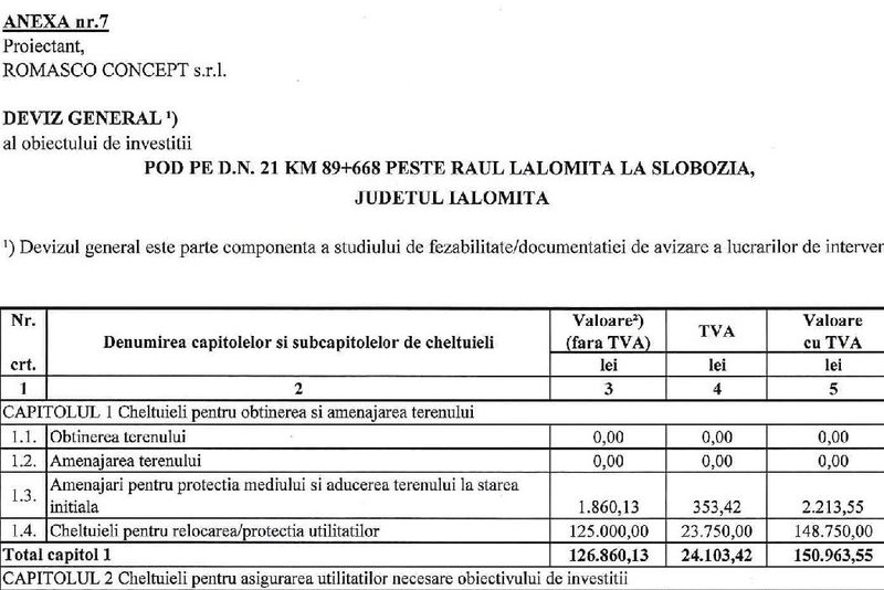 Dezvăluire lui Ciobanu sunt confirmate de documentele aferente licitației din iulie 2019. Conform devizului de lucrări (vezi foto) CNAIR a inclus în devizul estimativ suma de 125.000 de lei pentru relocarea utilităților.