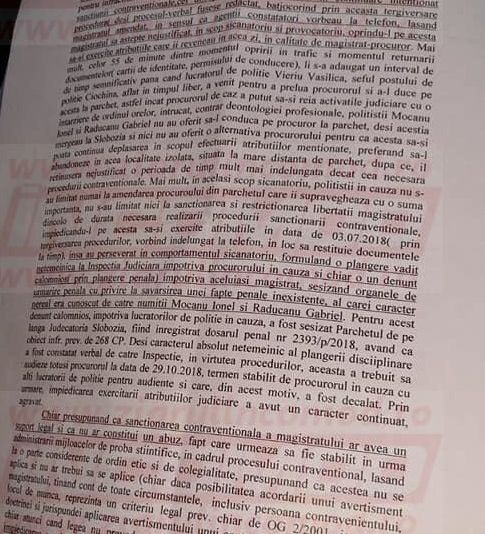 Dacă acest text se aplică polițiștilor din cauză ar însemna că Vasilescu poate amenda vânzătoarea de la magazin că nu-l servește mai repede și-l împiedică să ajungă la serviciu sau primăria pentru că ține prea mult semaforul pe culoarea roșie. Și delirul judiciar nu se oprește aici.Faptul că polițiștii au îndrăznit să sesizeze Inspecția Judiciară este considerat de procuror drept o manevră menită să-l împiedice să-și exercite atribuțiunile. Asta cu atât mai mult cu cât, zice procurorul, Inspecția Judiciară s-a antepronunțat și i-a spus lui că sesizarea polițiștilor este neîntemeiată. Ceea ce-i mai grav, Vasilescu scrie asta în Ordonanța prin care i-a amendat pe polițiști!