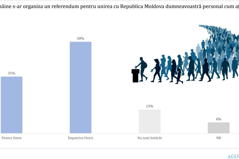 Românii se opun categoric unirii cu Republica Moldova, iar în cazul unei intervenții militare a Rusiei în țara vecină România nu ar trebui să intervină, arată datele unui sondaj AVANGARDE privind "sentimentul unionist". Pe de altă parte, opiniile sunt mai degrabă pozitive în ceea ce privește orientarea proeuropeană a Chișinăului și eforturile de integrare în UE.