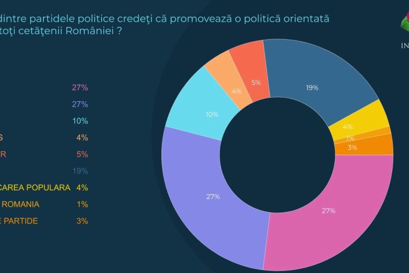 La întrebarea "Care dintre partidele politice credeți că promovează o politică orientată către toți cetățenii României?", PSD și PNL se află la egalitate, cu 27%. În top urmează AUR, cu 19% și USR, cu 10%.
