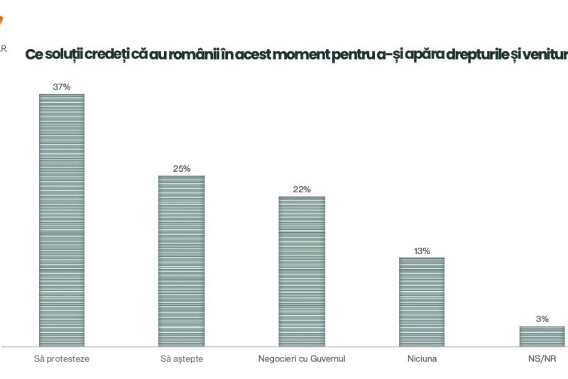 Realitatea tristă a sondajului mai arată că cea mai bună soluție pe care o indică românii pentru a-și apăra drepturile și veniturile o reprezintă protestele. 37% dintre cei intervievați s-au declarat a fi "pentru".