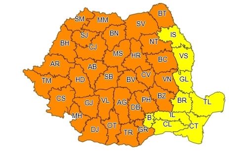 Administrația Națională de Meteorologie a actualizat avertizările meteo de caniculă și disconfort termic accentuat. În plus, a emis noi alerte de instabilitate atmosferică și ploi abundente.
