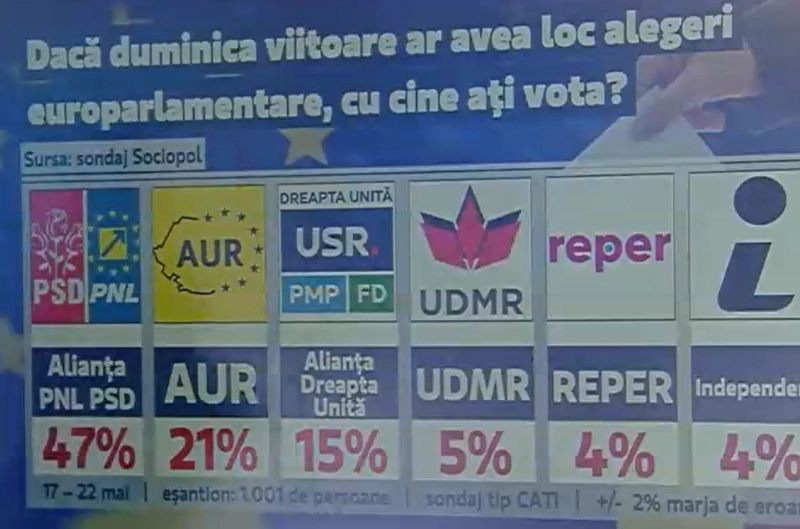 Sondaj Sociopol privind alegerile europarlamentare a fost realizat în intervalul 17 – 22 mai